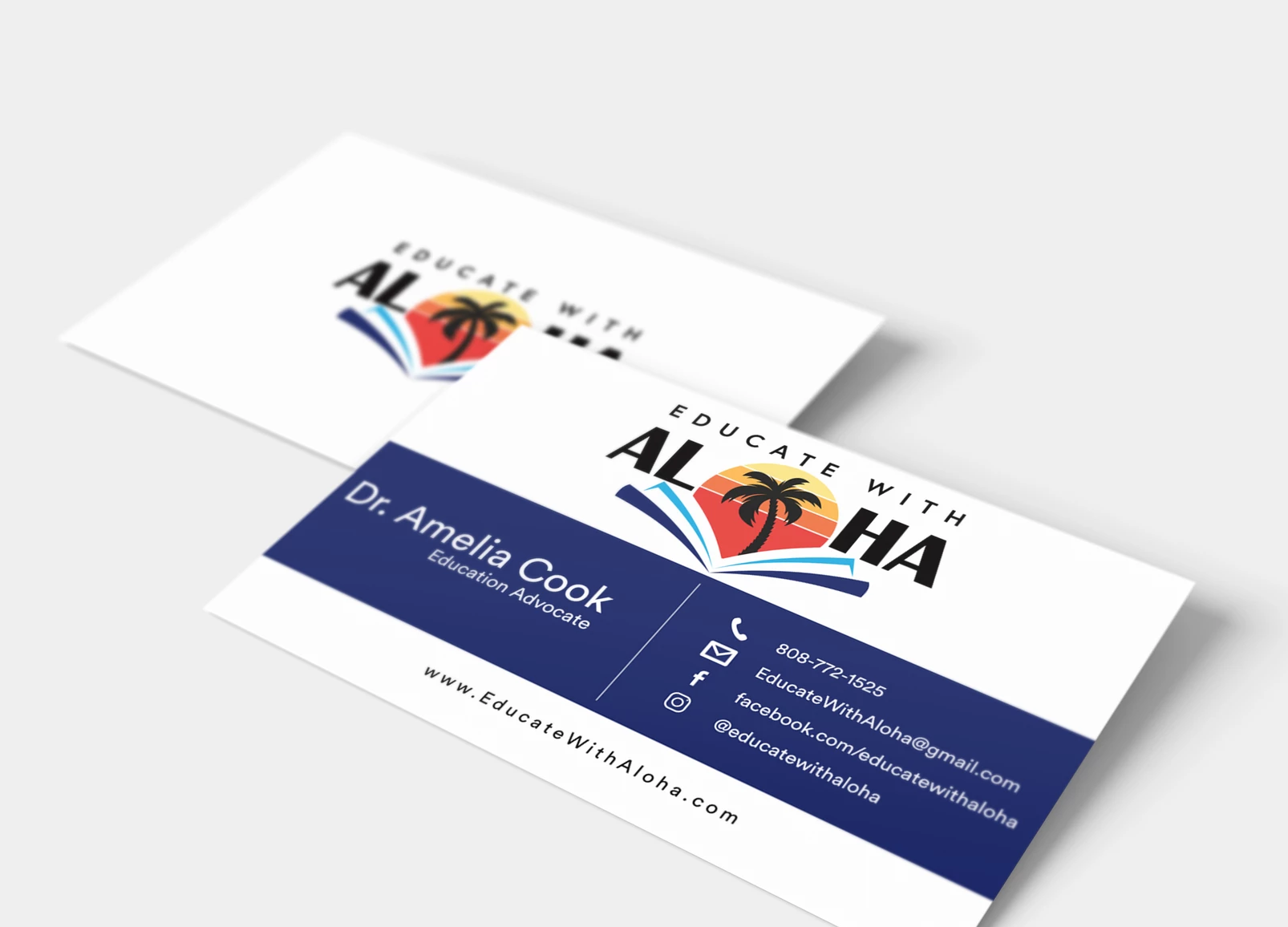 Collaborated with Dr. Cook to develop a brand identity for Educate with Aloha. Design projects included creating a logo, business card, flyer, as well as video editing and photoshoot for profile and future media use.